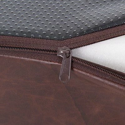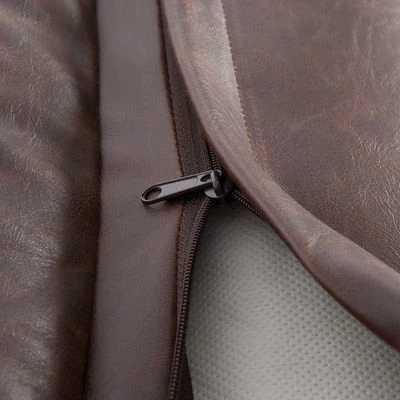 La surface lisse de la housse marron en simili-cuir de qualité est particulièrement douce et ses effets marbrés lui donnent un aspect vieilli. Cette matière est naturellement sans odeur et protège efficacement des acariens et des puces.