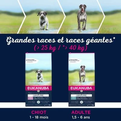 Caractéristiques des croquettes Eukanuba Grain Free Adult Large Breed avec du saumon pour chien :