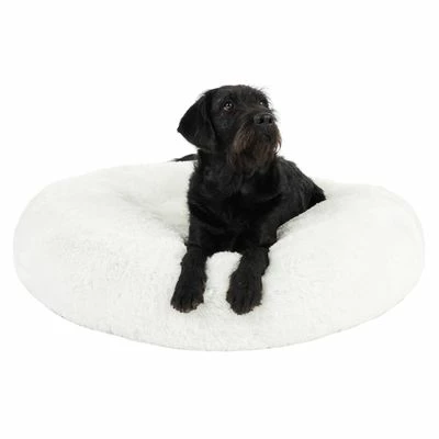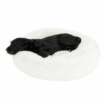Panier confortable pour chien, idéal pour les chiens âgés et malades, très doux et confortable, rembourrage avec flocons viscoélastiques, s’adapte à la morphologie, housse en peluche, coloris : blanc.