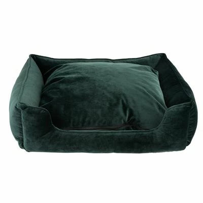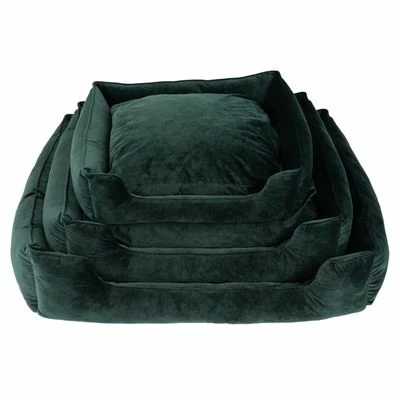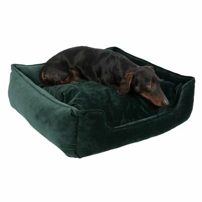 Panier à mémoire de forme orthopédique pour chien, fabrication durable, housse en polyester recyclé, surface satinée, rembourrage confortable et ajustable de manière individuelle, rebord surélevé. Coloris : vert