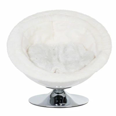 La coque moderne en acrylique du panier rétro Pet Nest peut être complètement recouverte d’une housse blanche en peluche, fixée à la bordure par un élastique. Le panier dispose également d’un coussin épais en peluche à poils longs, propice au repos et à la détente.