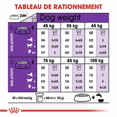 - croquettes de qualité pour les chiens de très grandes races (à partir de 45 kg)