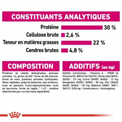 - 99 % des chiens apprécient cette nourriture, croquettes testées et prouvées scientifiquement au ROYAL CANIN Campus